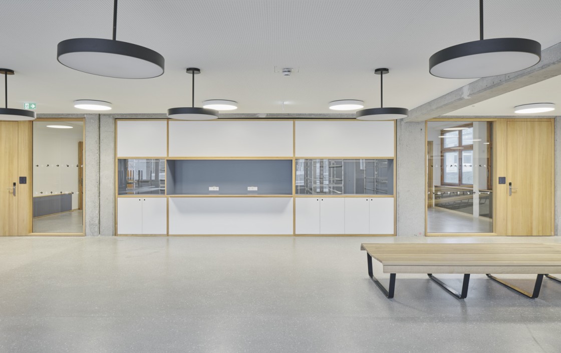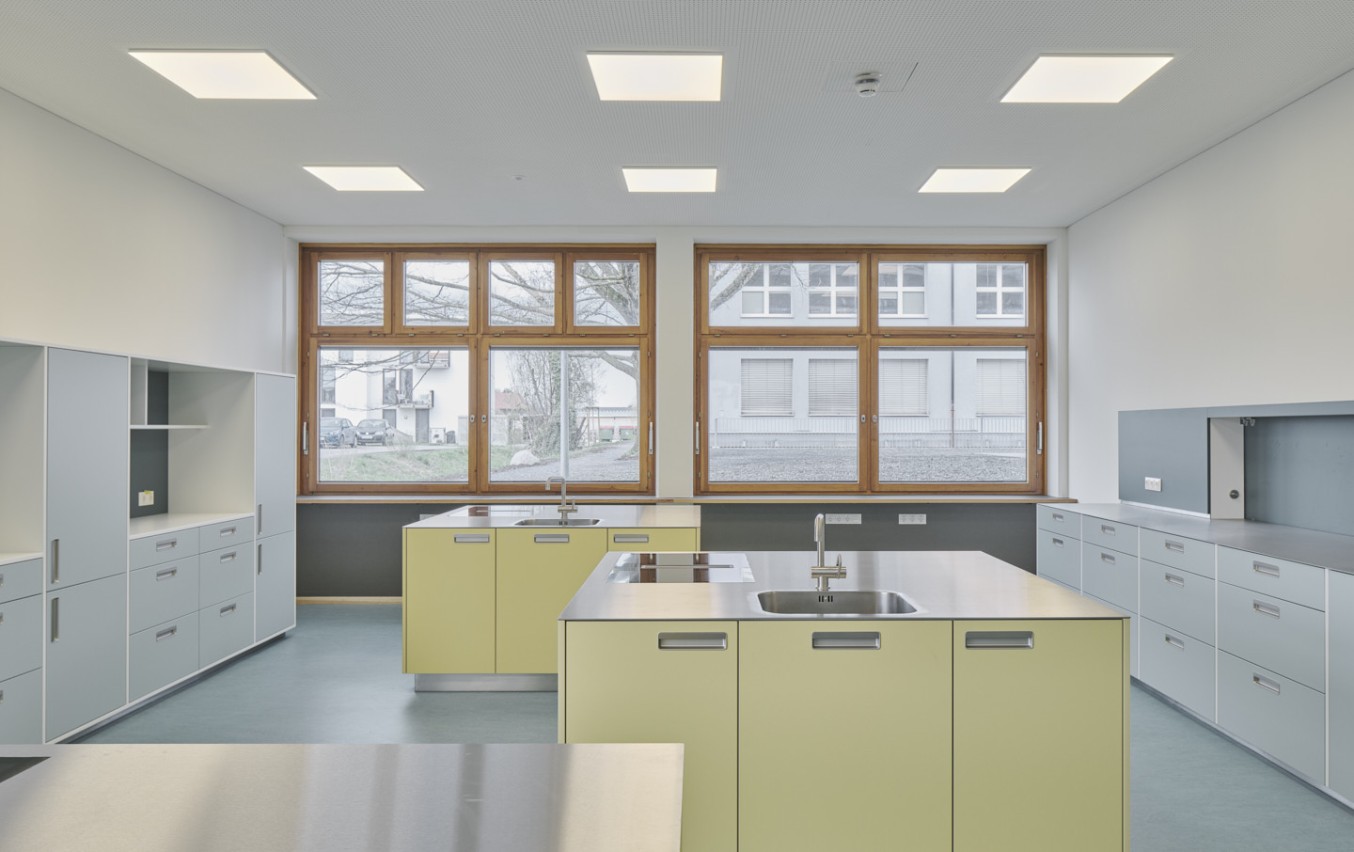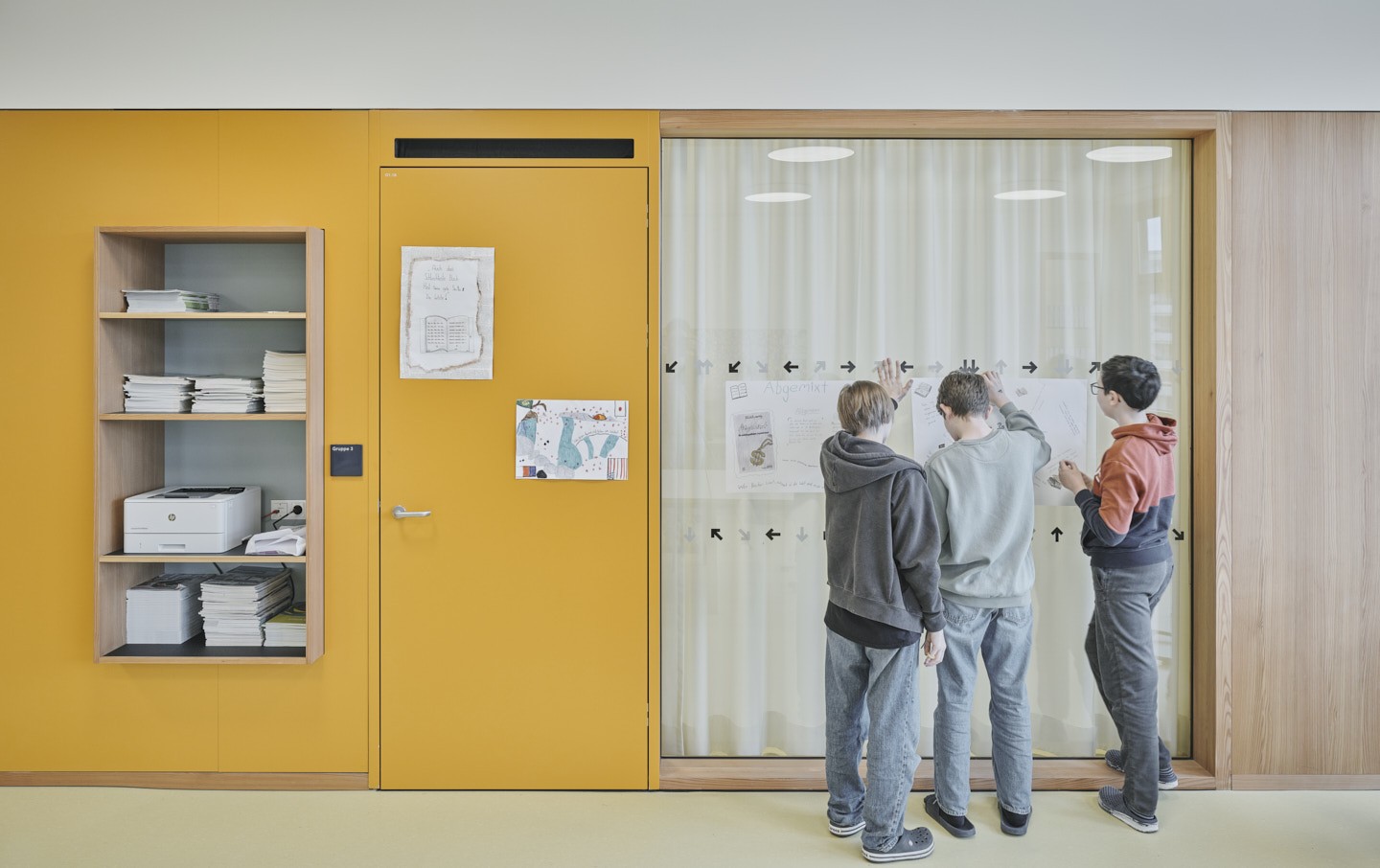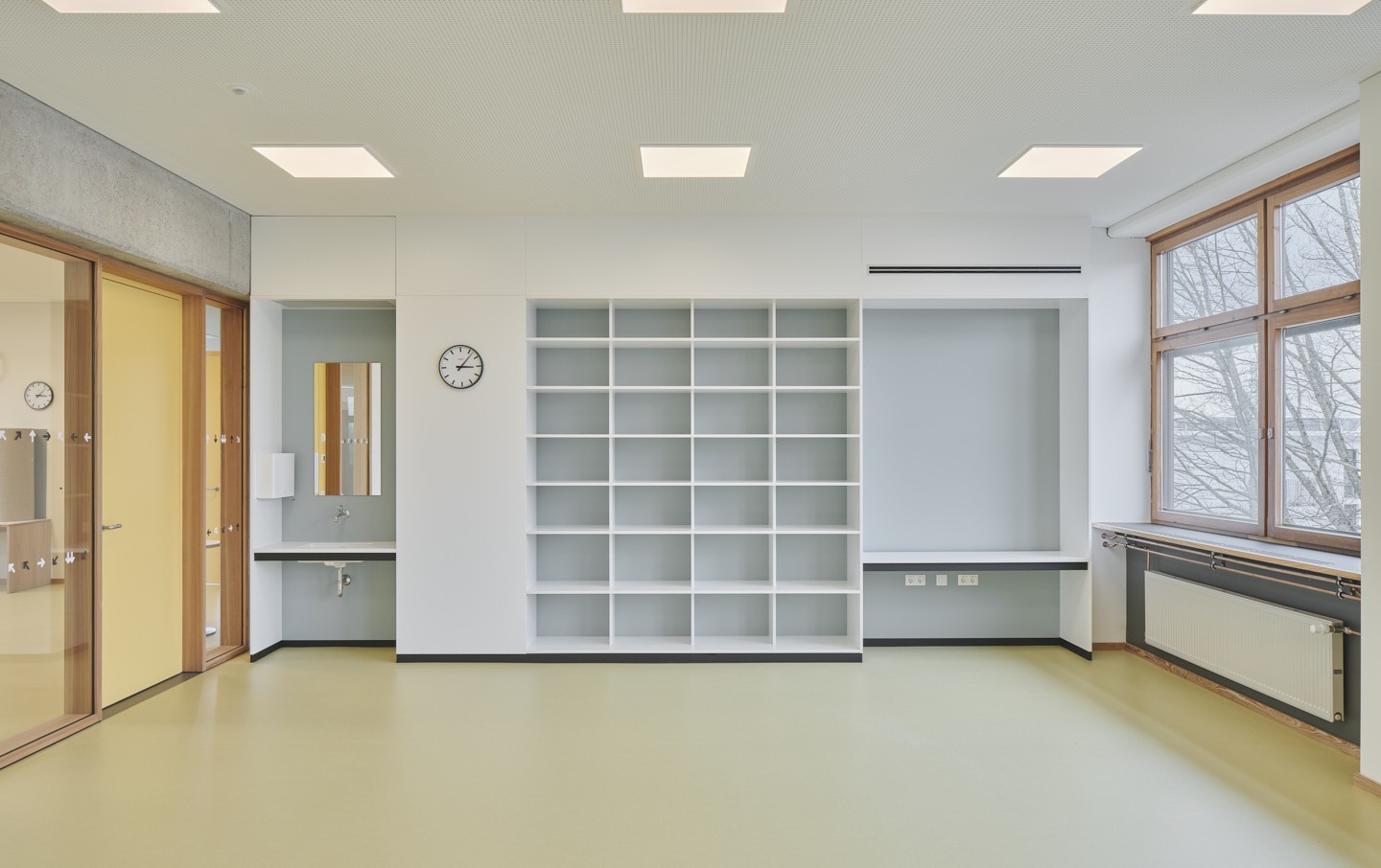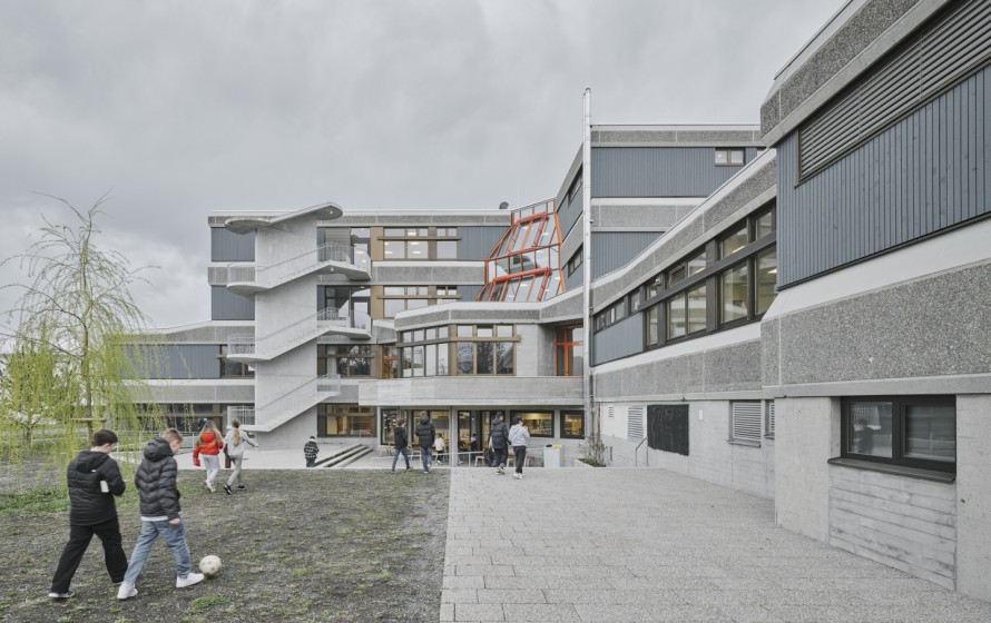 Charakter und Duktus der Schule in der Mittelweiherburg werden im Wesentlichen übernommen und weitergeführt, die vorhandenen Qualitäten der Schule bilden eine gute Basis für die aktuellen inhaltlich/pädagogische Weiterentwicklungen. Wesentliche Elemente aktueller Pädagogik sind im Bestandsbau angelegt - nach fast fünfzig Jahren kommt die Pädagogik auf Augenhöhe mit dem theoretischen Überbau des Schulbaus der Sechziger- und Siebzigerjahre.