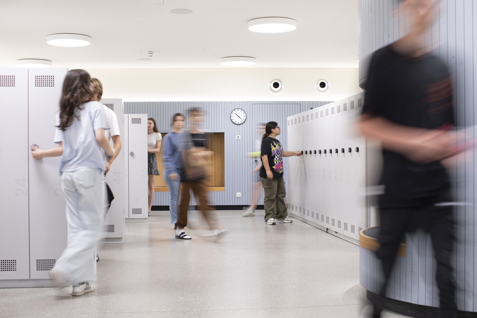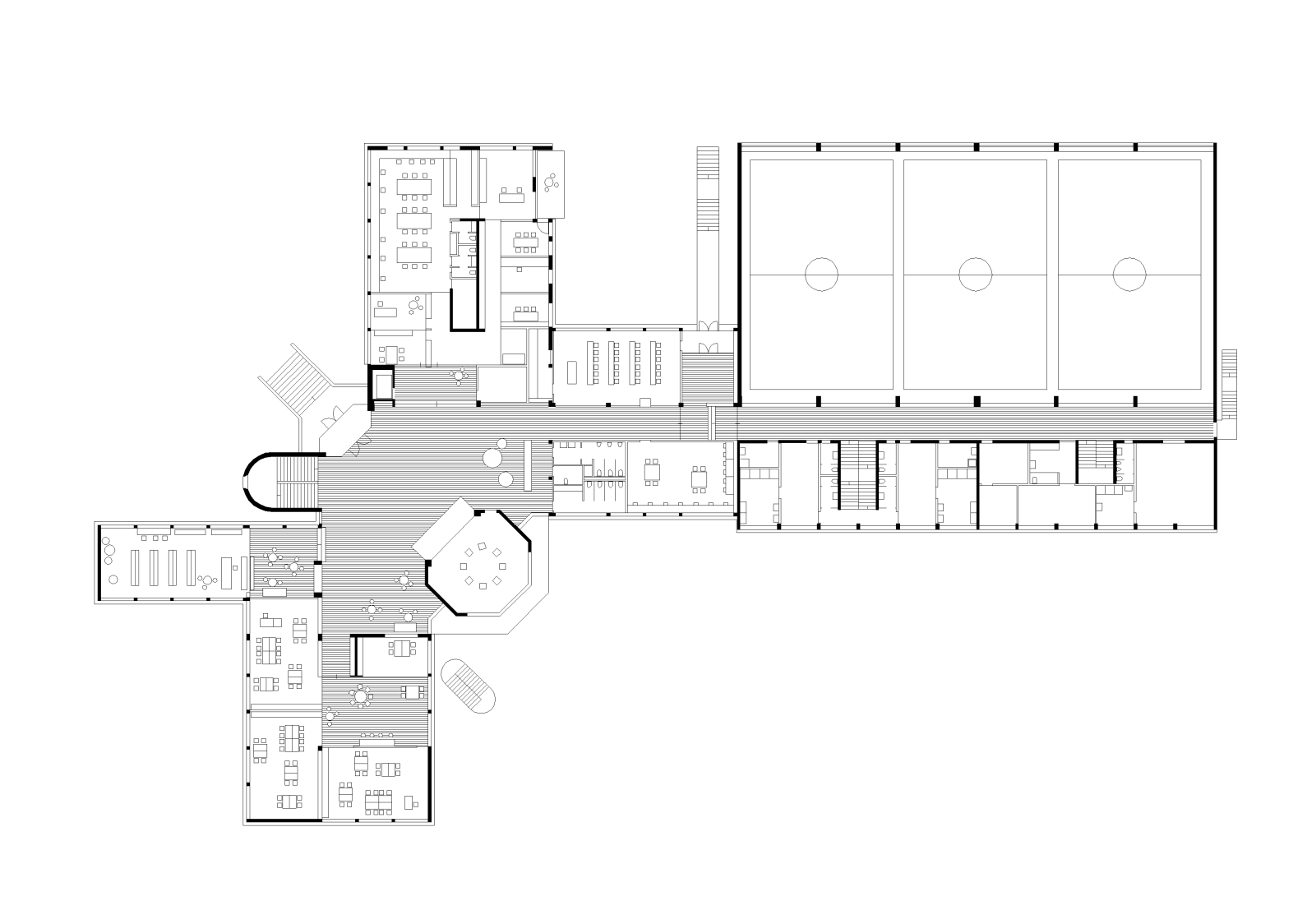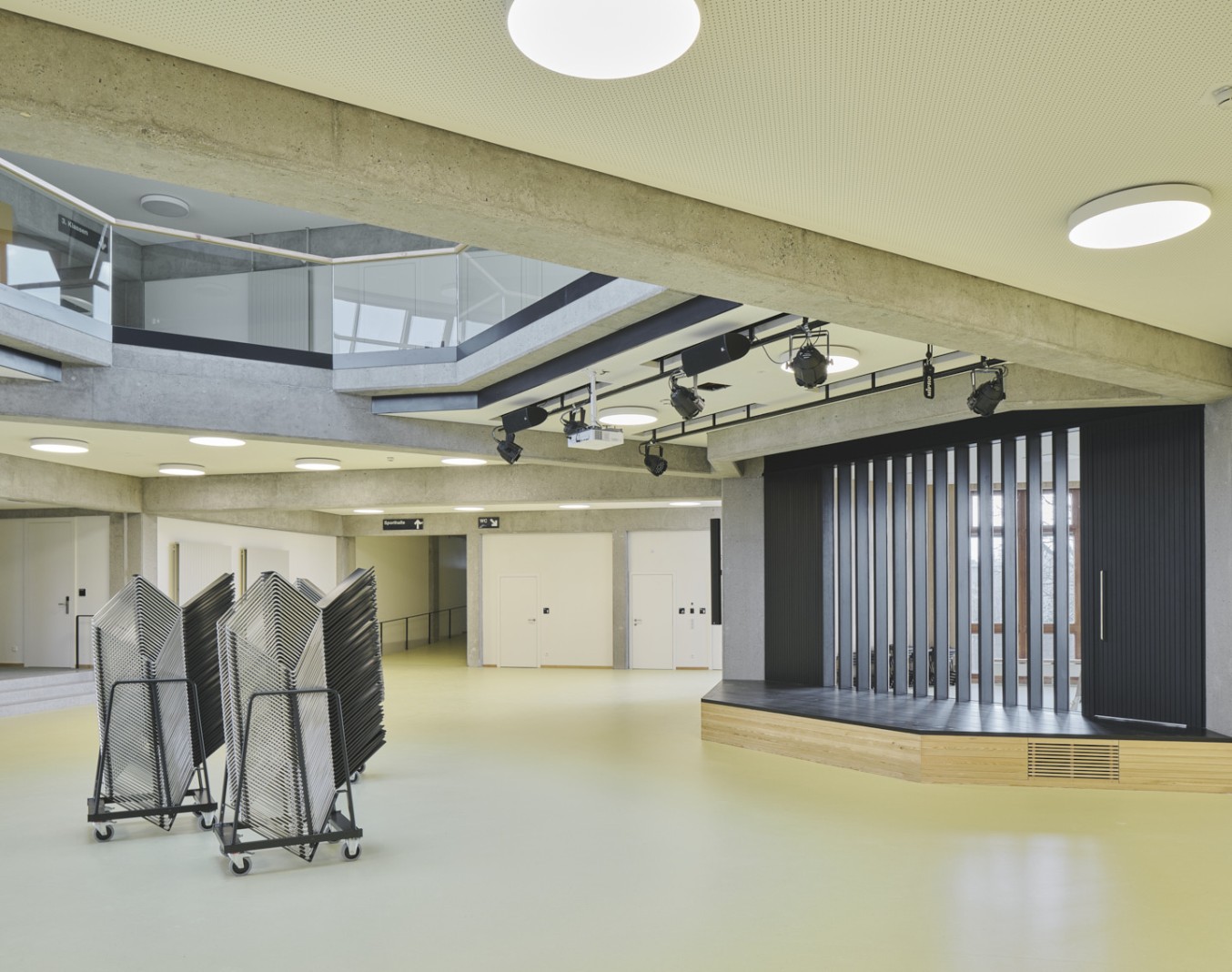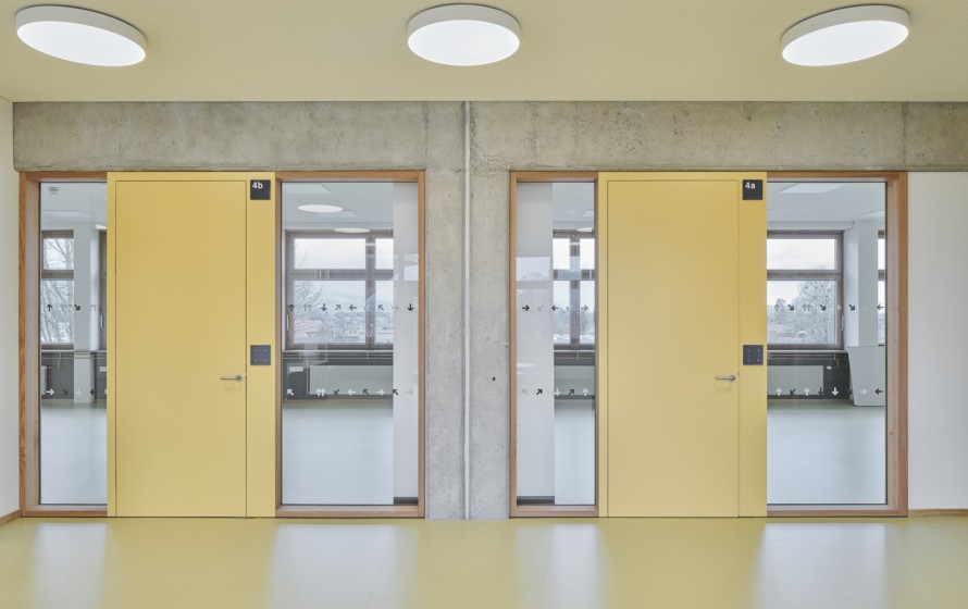Charakter und Duktus der Schule in der Mittelweiherburg werden im Wesentlichen übernommen und weitergeführt, die vorhandenen Qualitäten der Schule bilden eine gute Basis für die aktuellen inhaltlich/pädagogische Weiterentwicklungen. Wesentliche Elemente aktueller Pädagogik sind im Bestandsbau angelegt - nach fast fünfzig Jahren kommt die Pädagogik auf Augenhöhe mit dem theoretischen Überbau des Schulbaus der Sechziger- und Siebzigerjahre.