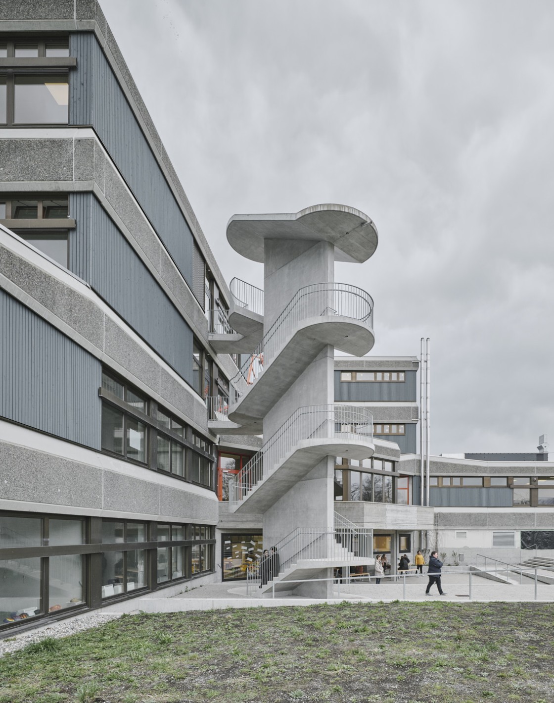 Das Anfang der 70er Jahre von Werner Pfeifer entworfene und von seinem Nachfolgebüro realisierte Schulgebäude spiegelt in exemplarischer Weise die Entwicklungen in Schulbau und Architektur dieser Zeit wieder.